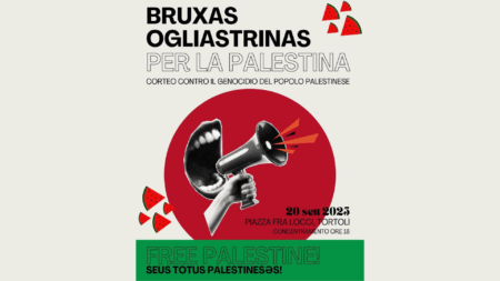 Corteo in sostegno del popolo palestinese organizzato dalle Bruxas Ogliastrinas sabato 20 settembre a Tortolì, concentramento dalle 18:00 in Piazza Fra Locci