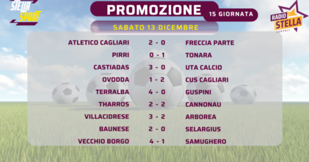 Giornata di Promozione interamente giocata in anticipo e qui le cose vanno un po’ meglio. Il Cannonau riesce a strappare un pareggio alla Tharros. unica nota positiva la baunese che in casa batte il Selargius per 2 reti a 0.