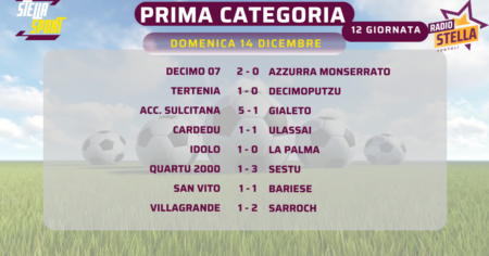 Sono migliori i risultati in Prima Categoria. Ancora il nostro luciano ci racconta di un bel Tertenia che nell’anticipo ha battuto il Decimoputzu. Oggi la vittoria dell’Idolo sul la Palma, il pareggio del Cardedu nel derby ogliastrino contro l’Ulassai e ancora un pareggio tra Quartu 2000 e Bariese. Partita a senso unico invece al Zazzo Melis dove i padroni di casa incassano la sconfitta contro la Gioventù Sarroch per 1 a 0.